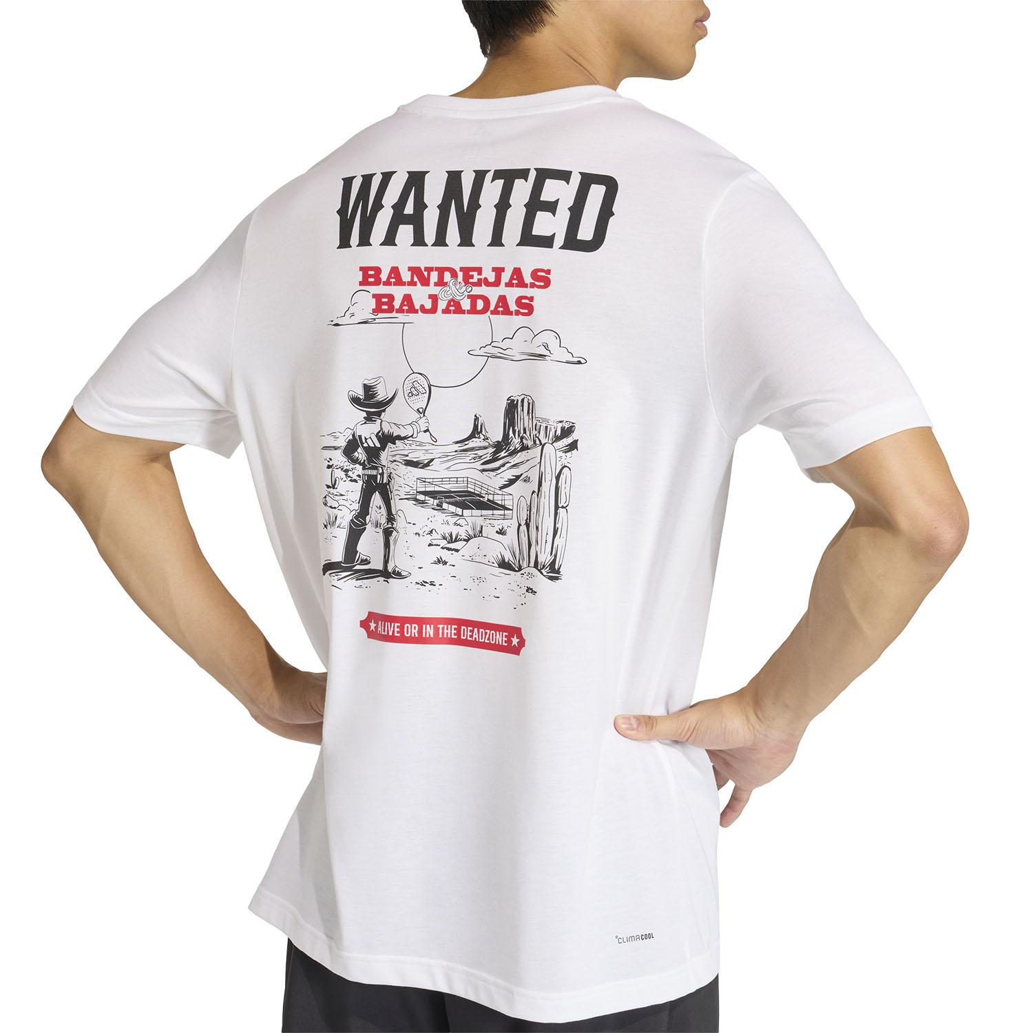 Inspired by western style, the adidas Wanted t-shirt is the perfect choice for those who want a touch of humor on the padel court. The soft jersey and breathable technology work together to accommodate your every move, leaving you cool and ready for any action: original and full of energy, it will accompany you through every challenge. Also suitable for tennis.