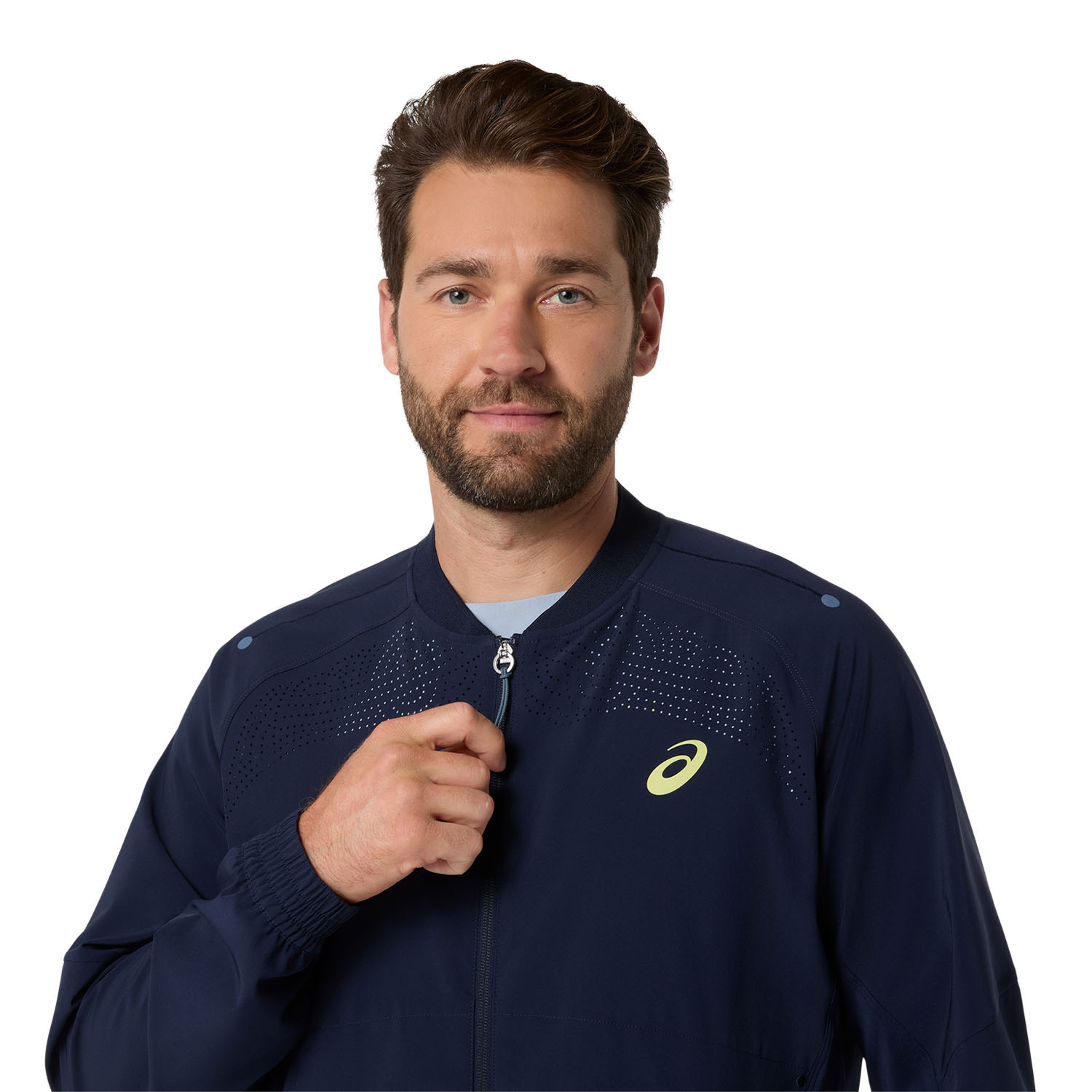 Perfect for wearing during breaks or warm-ups, the ASICS Match Active men's tennis jacket combines lightweight and breathable fabric with exceptional ventilation and style from the moment you step onto the court to the end of your match.