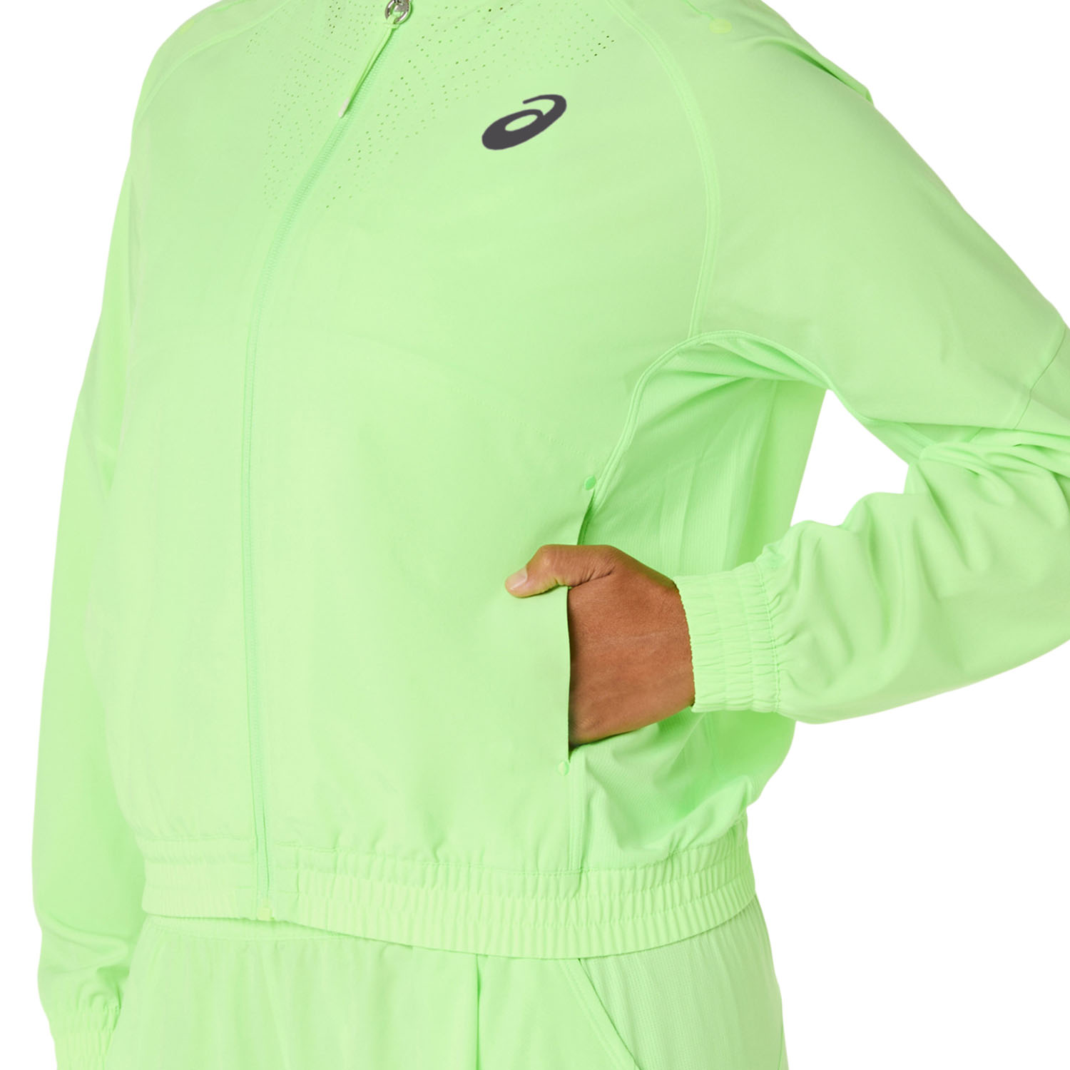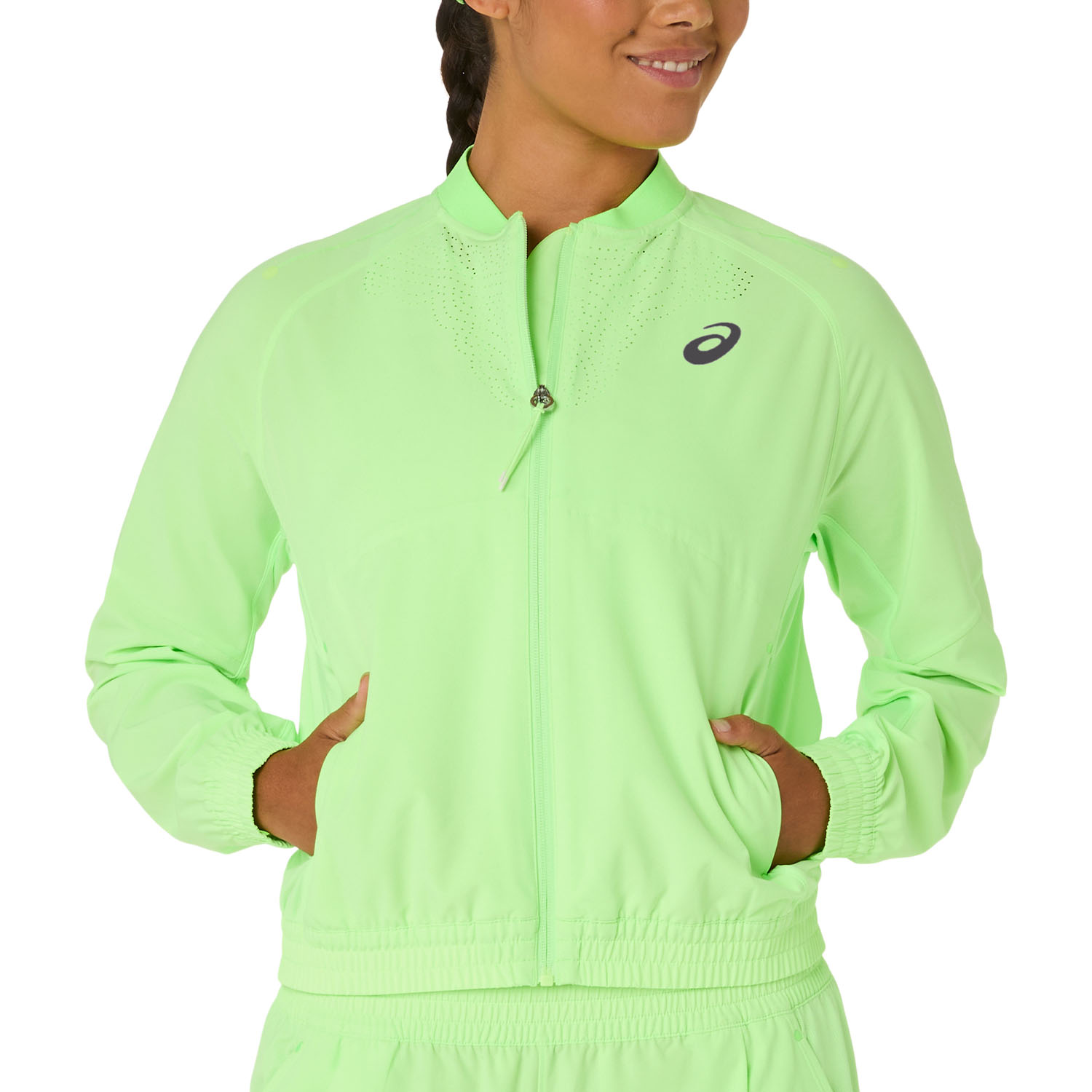 Perfect for wearing during breaks or warm-ups, the ASICS Match women's tennis jacket combines lightweight and breathable fabric with exceptional ventilation and style from the moment you step onto the court to the end of your match.