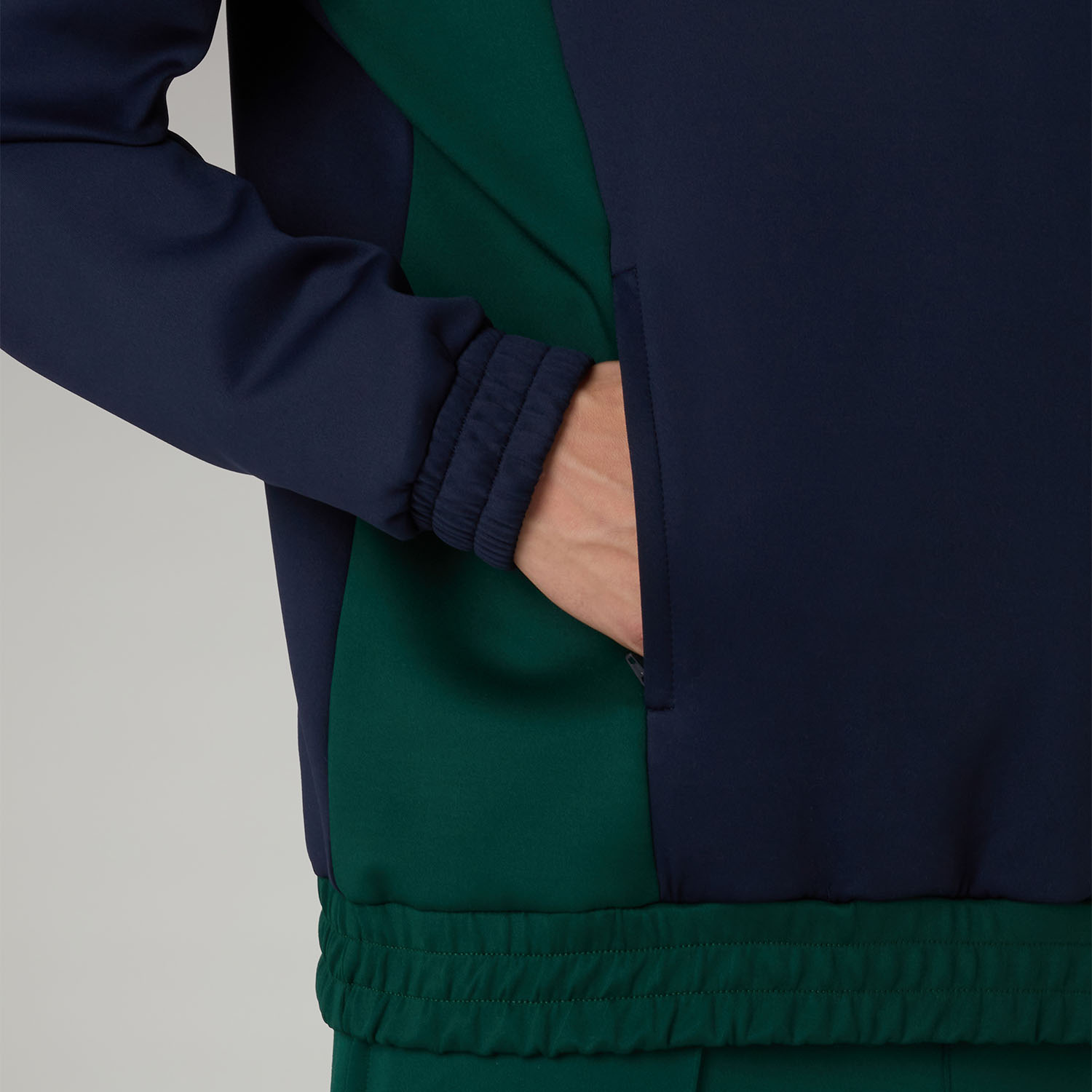 - Elasticated ribbed cuffs and bottom hem