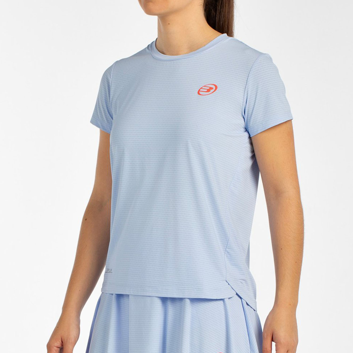 Designed by Delfi Brea , the Bullpadel Chamuy women's padel t-shirt is designed for dynamic players who want to move with agility on the court. Made from lightweight, ultra-stretchy technical fabric, it features Drylum technology, which wicks sweat away quickly and keeps skin dry during play. Also suitable for tennis.