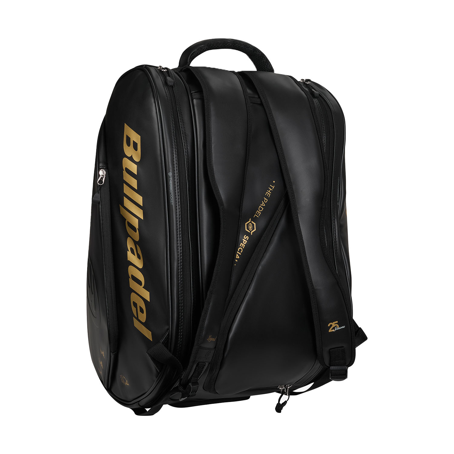 Designed to pay homage to the extraordinary career of Alejandra Salazar, the Bullpadel Flow Legend padel bag is the ideal companion for those who need excellent storage without sacrificing impeccable style. Made of resistant imitation leather, it can carry up to 4 padel rackets without covers and all the equipment you need.