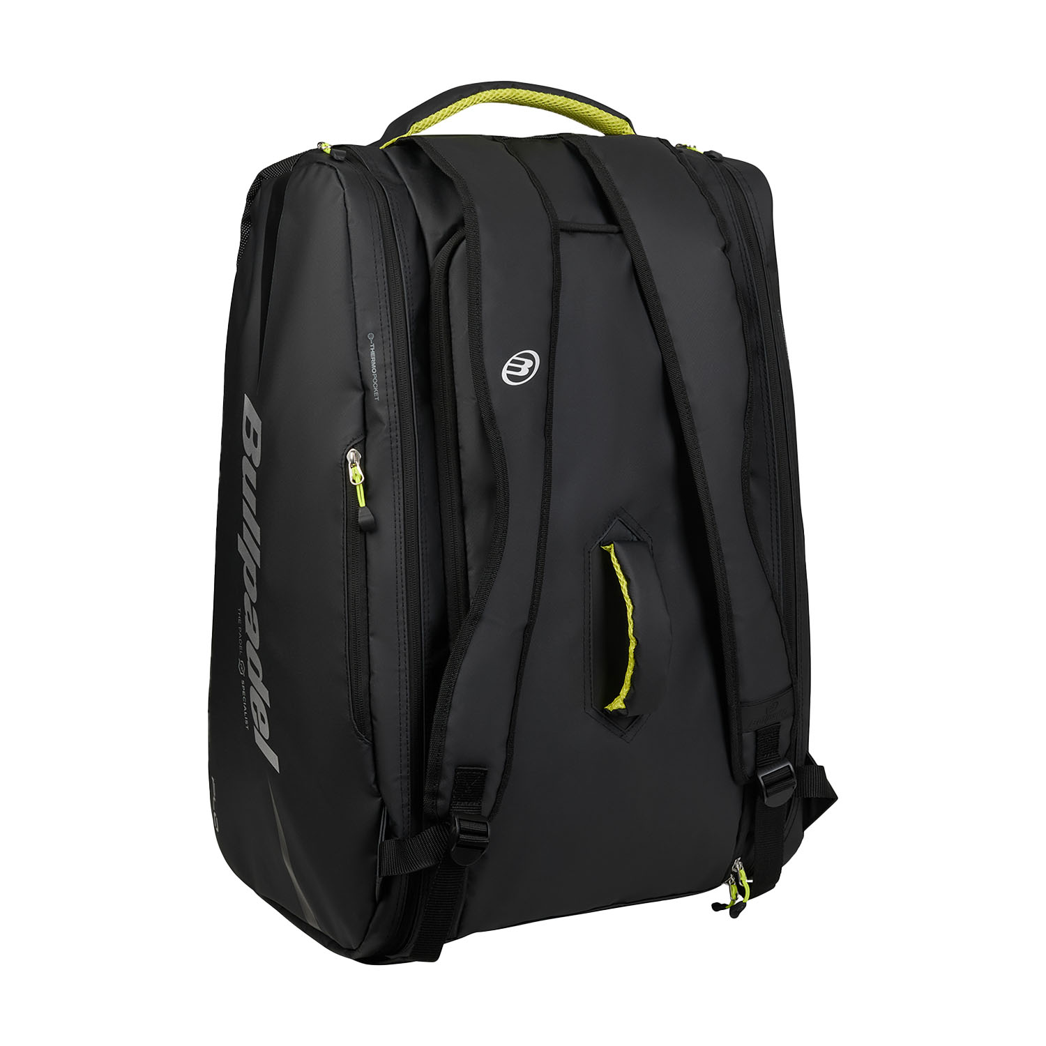Born from the collaboration with Argentine champion Martín Di Nenno, the Bullpadel XPLO Pro padel bag combines capacity and durability with unmistakable style. Designed to accompany the most demanding players even on the longest trips, it offers space for carrying up to 4 rackets without cover and impeccably organizes all your necessary equipment.
