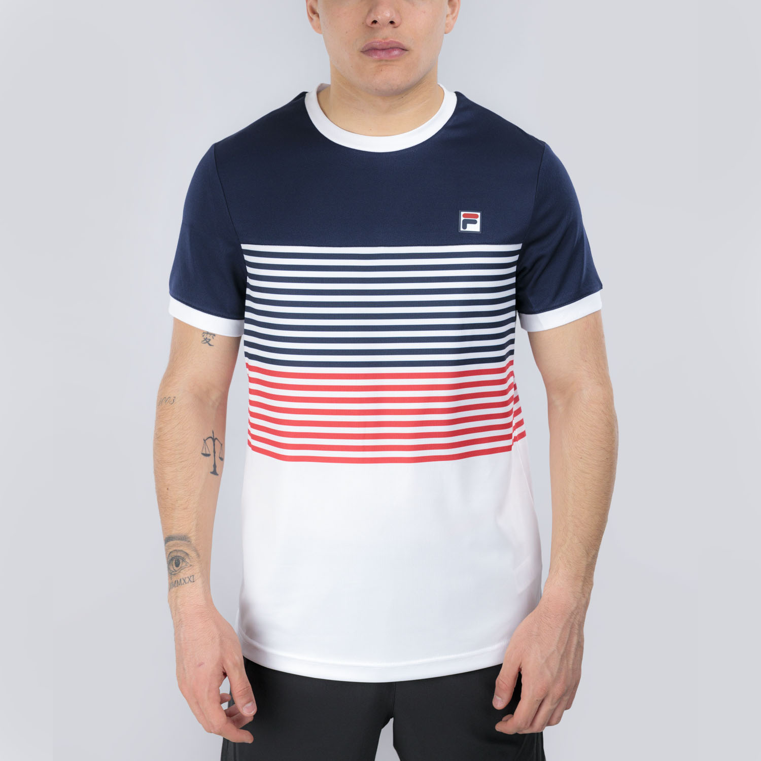 The Fila BB 1983 men's tennis t-shirt combines classic style with modern materials. The lightweight, technical fabric ensures freshness throughout the match, while the stretchy material follows every move, from serves to volleys.