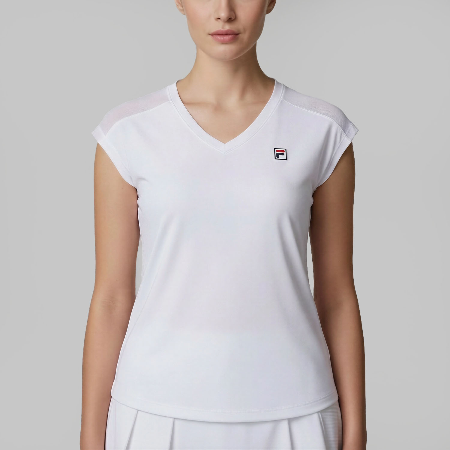 The Fila Maria women's tennis t-shirt is designed to follow you through every exchange: the ultra-stretch and lightweight fabric follows every movement, while the mesh inserts promote constant air circulation, so you stay cool and focused until the last point.