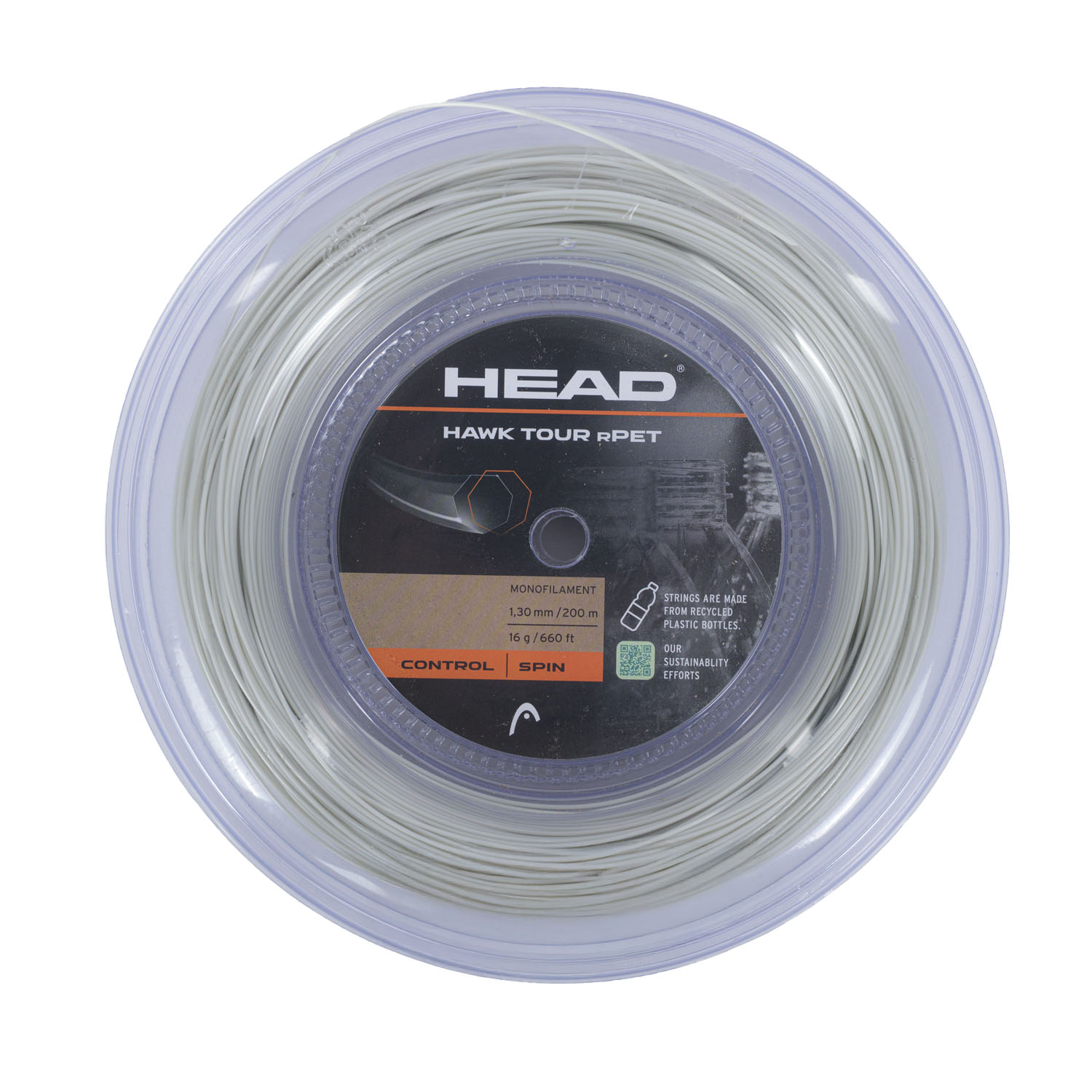 Made from recycled PET materials, HEAD Hawk Tour rPET 1.30 is the co-polyester string designed for players seeking the perfect balance between explosive spin and control. It guarantees precise and stable shots, offering a dynamic and engaging playing experience.
