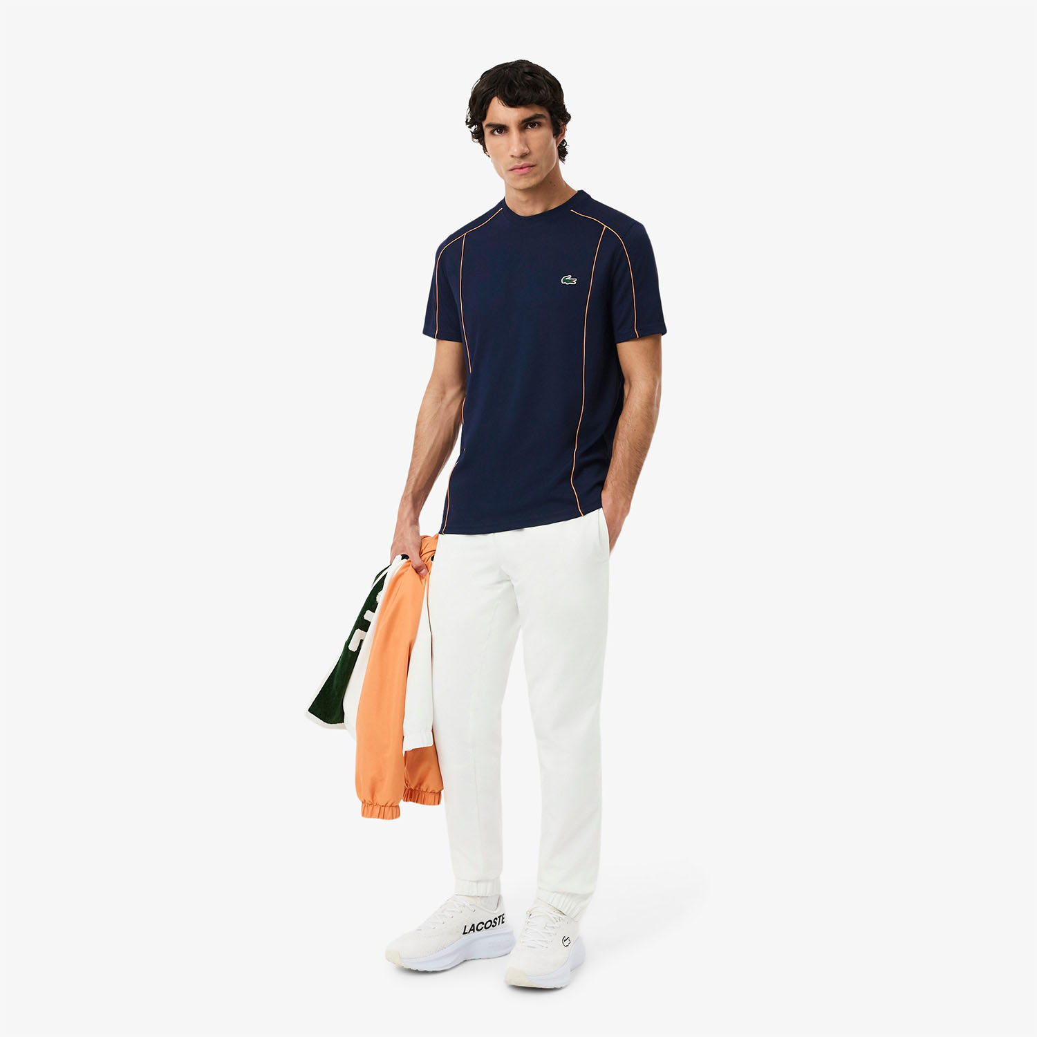 The Lacoste Ultra Dry Pique men's tennis t-shirt combines style and performance. The stretchy and breathable fabric follows every move on the court and ensures optimal moisture management, keeping you dry and cool.