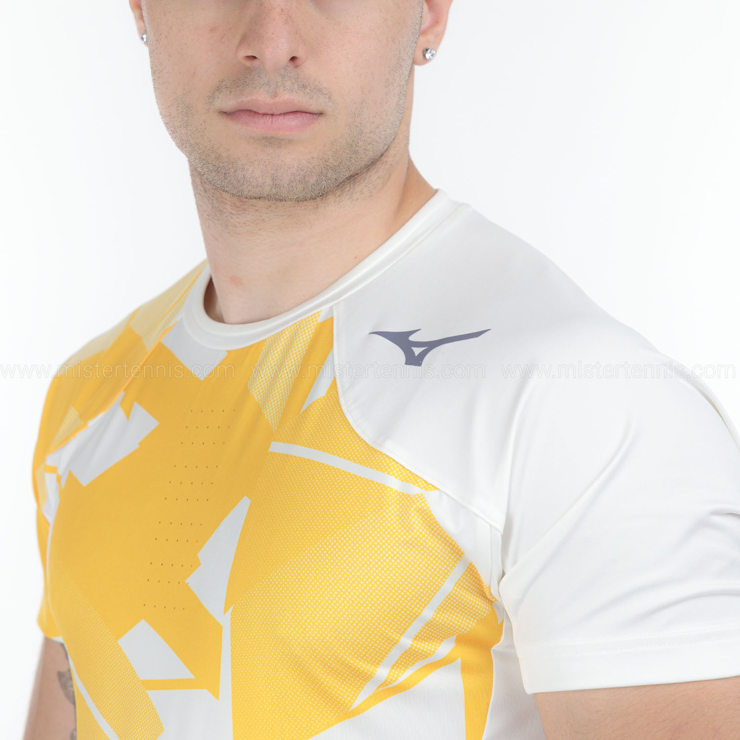 Comfort and style meet in the Mizuno Daybreakers Graphic men's tennis t-shirt. Made of stretchy fabric, it follows your every move naturally, leaving you free to focus only on the game. The colorful graphics add a touch of personality, perfect for those who want to stand out on the court without sacrificing performance.