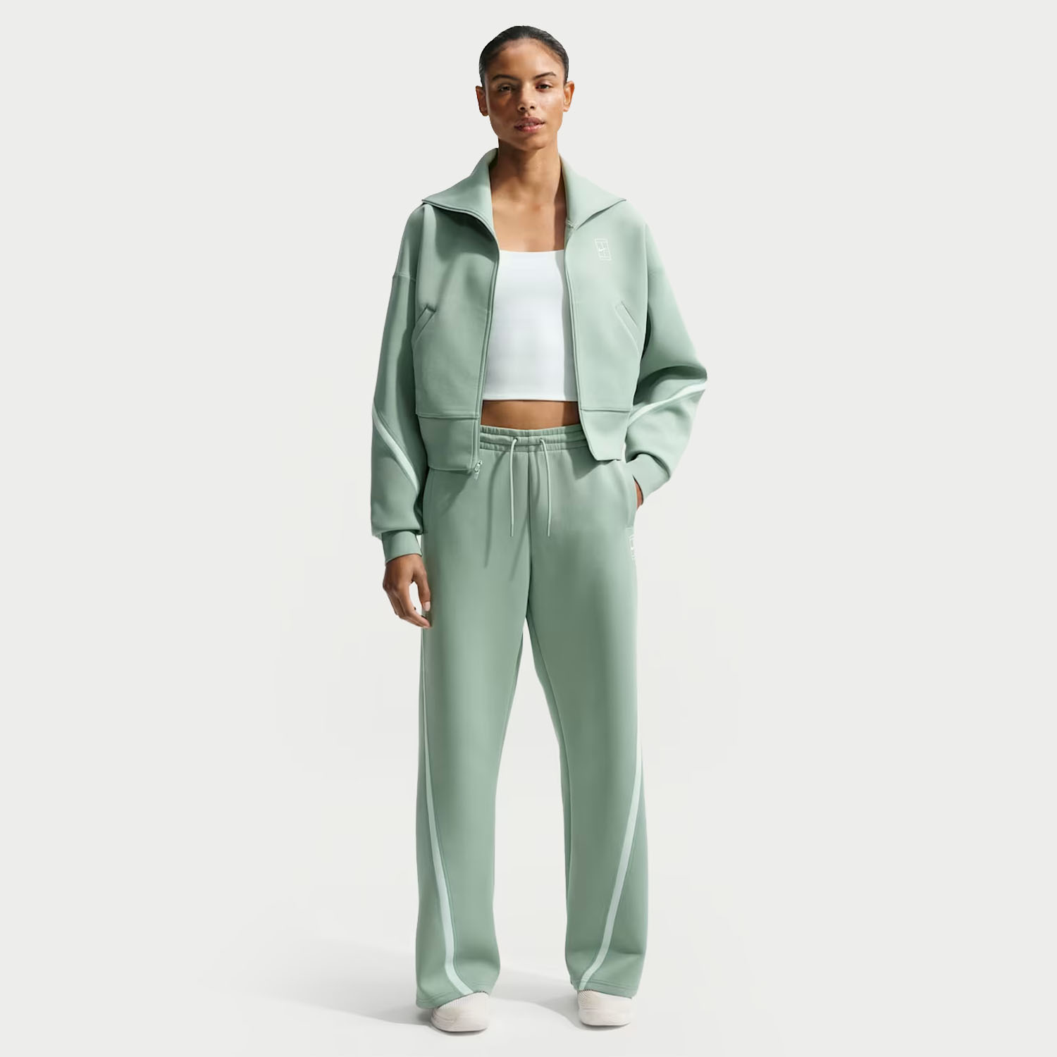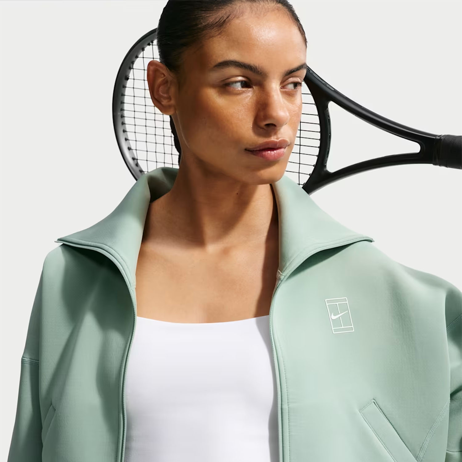 Perfect for pre and post match wear, the Nike Court Advantage women's tennis jacket offers extended freedom of movement. The soft and stretchy fabric feels comfortable against your skin, while the wide waistband hugs your body for support and ideal coverage at all times.