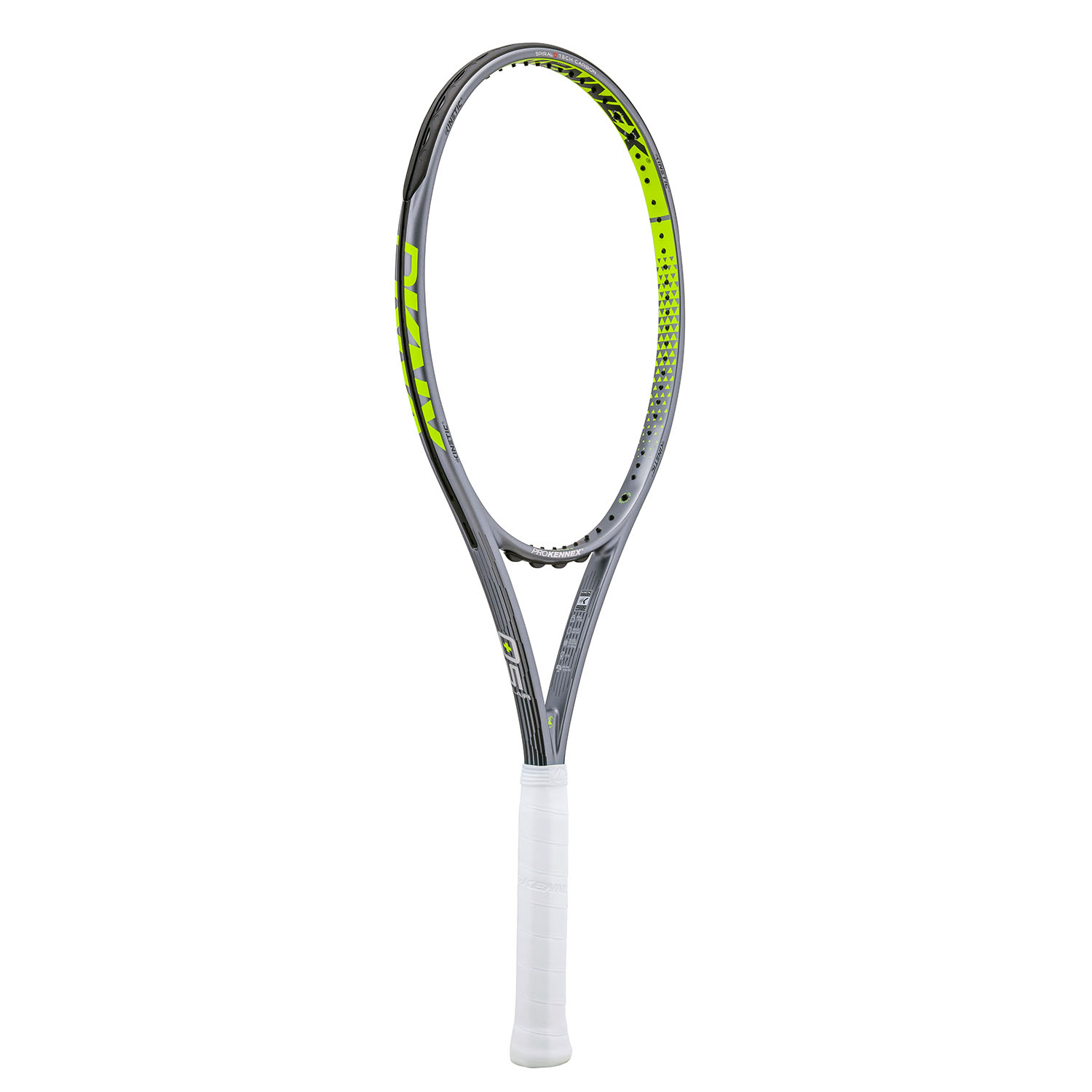 The Kinetic System consists of microspheres (Kinetic Mass) enclosed in capsules integrated into the frame, designed to store the racquet's energy during shot preparation. As the frame accelerates, the microspheres move toward the walls of the capsule on the opposite side of the ball. At impact, when the strings bend, the microspheres release additional energy. Immediately afterward, they move to stabilize and rebalance the frame, helping to increase ball speed. This synchronization reduces shock and vibration while also expanding the sweet spot. - Spiral Tech Carbon