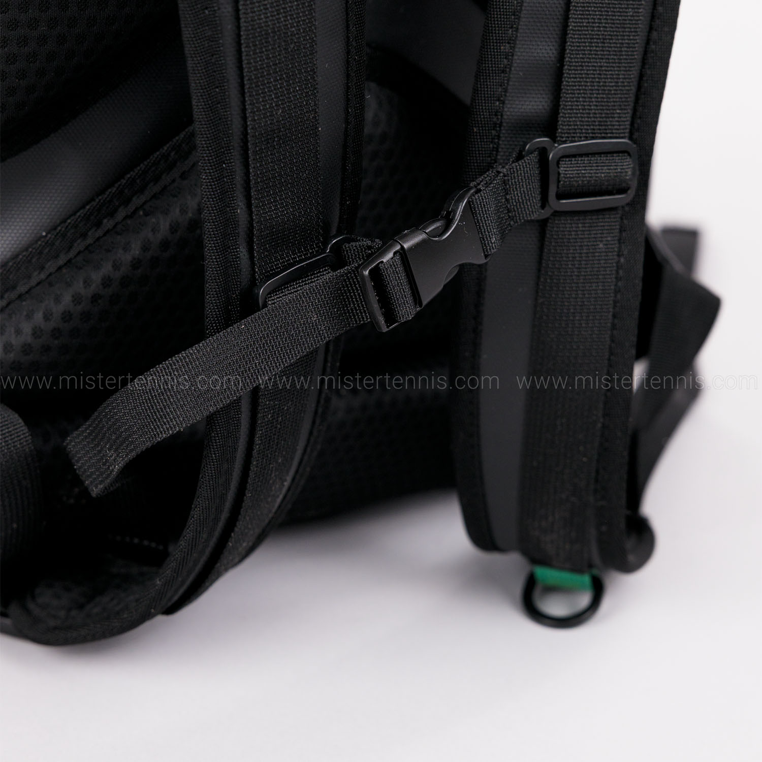 - Adjustable shoulder straps with mesh padding, featuring a sternum strap that keeps the backpack in place during transport and a plastic loop for attaching small accessories