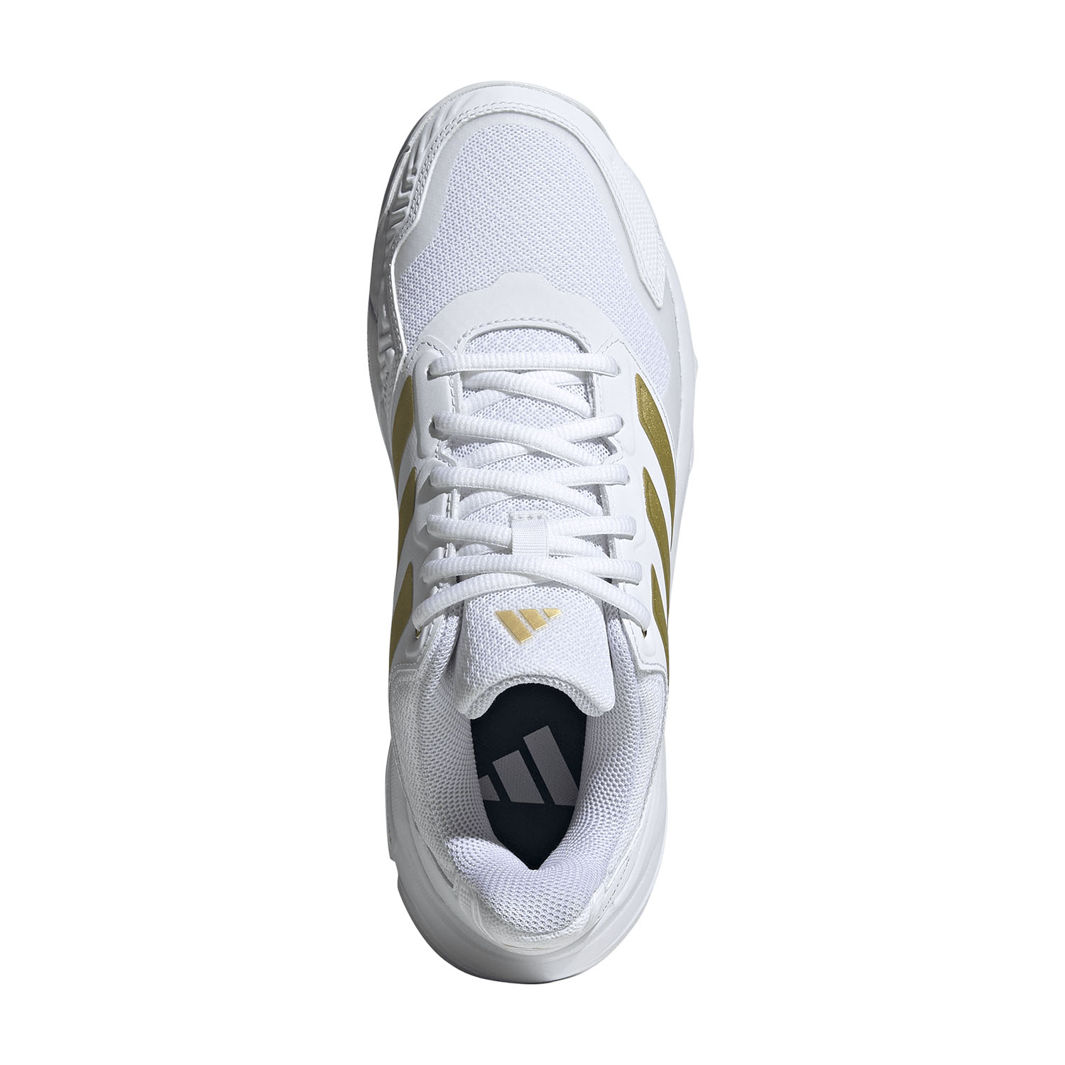 Las estables y acolchadas zapatillas de tenis para mujer adidas Courtjam Control 3 son perfectas para las jugadoras que prefieren controlar el partido y esperar el momento adecuado para golpear la red. La suela es apta para jugar en pistas duras.