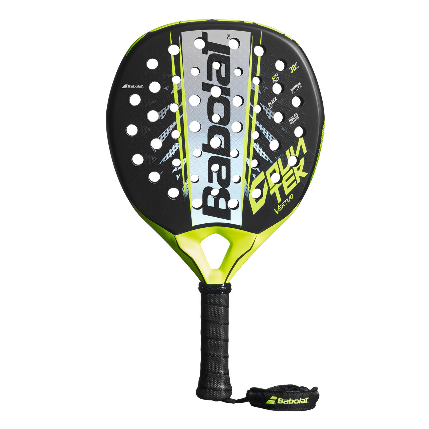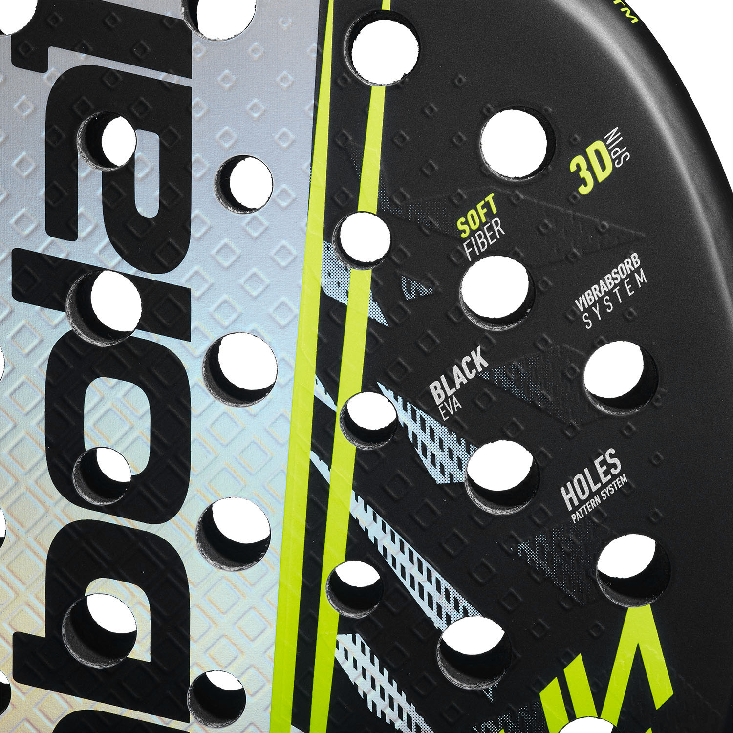 Realizado en sinergia con SMAC, el sistema ofrece una mejor absorción de vibraciones gracias a un nuevo material elastomérico integrado en el grafito del núcleo de la raqueta que aporta más comodidad en cada golpe, reduciendo el riesgo de lesiones. - Holes Pattern System