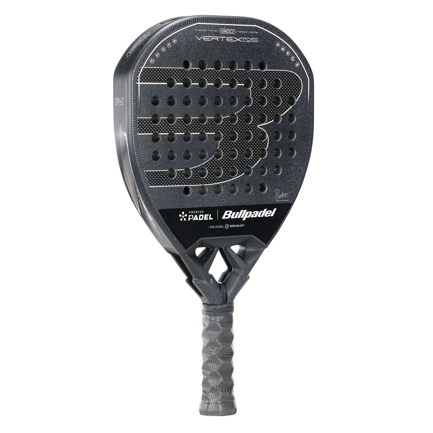 Diseñada para quien busca ritmo y contundencia en cada peloteo, la pala Bullpadel Vertex 05 GEO (Geometric) Premier Padel es una edición exclusiva dedicada al circuito internacional, con un diseño distintivo y un alto rendimiento. Diseñada por Pablo Cardona, combina potencia, agresividad y control para finalizar el punto con seguridad.