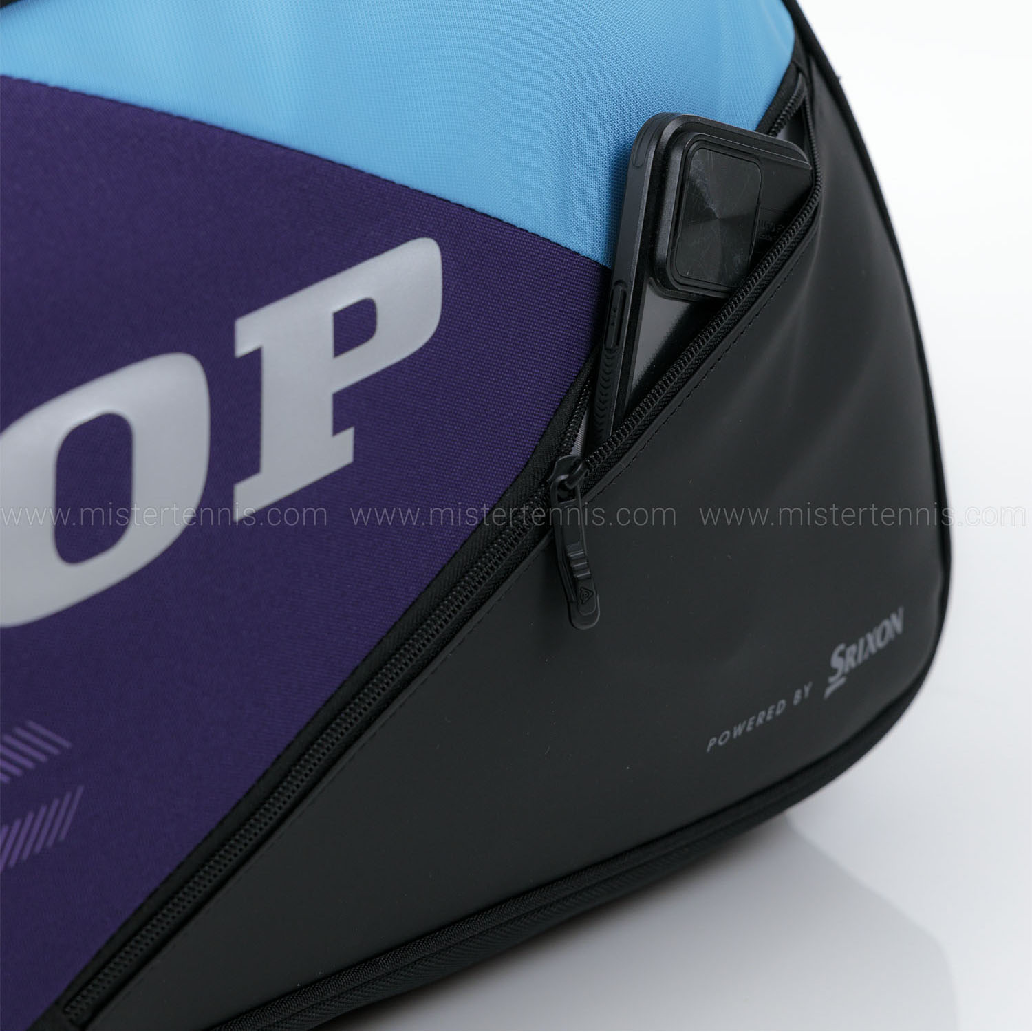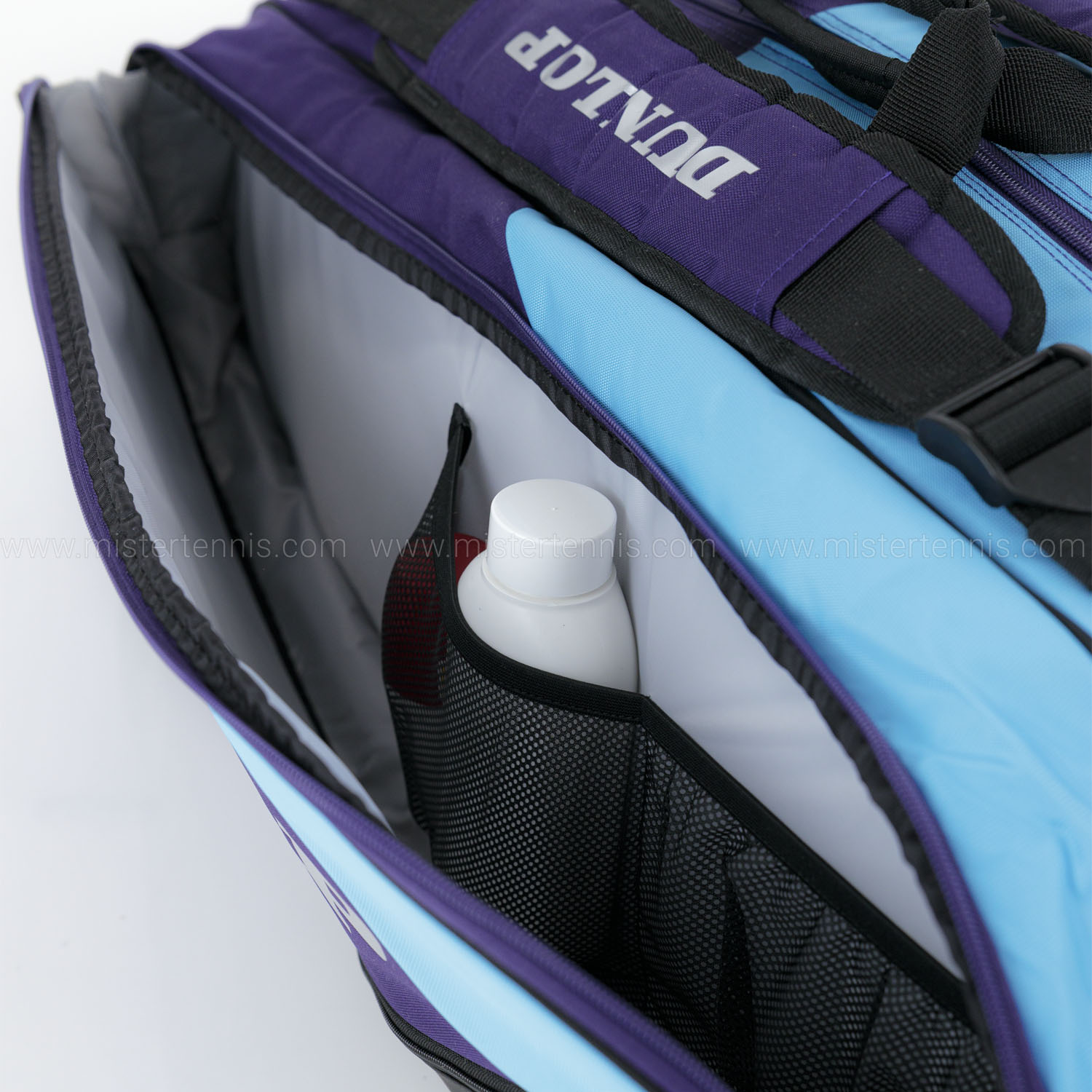 - Compartimento lateral con cremallera bidireccional y aislamiento térmico para proteger las raquetas de los cambios de temperatura