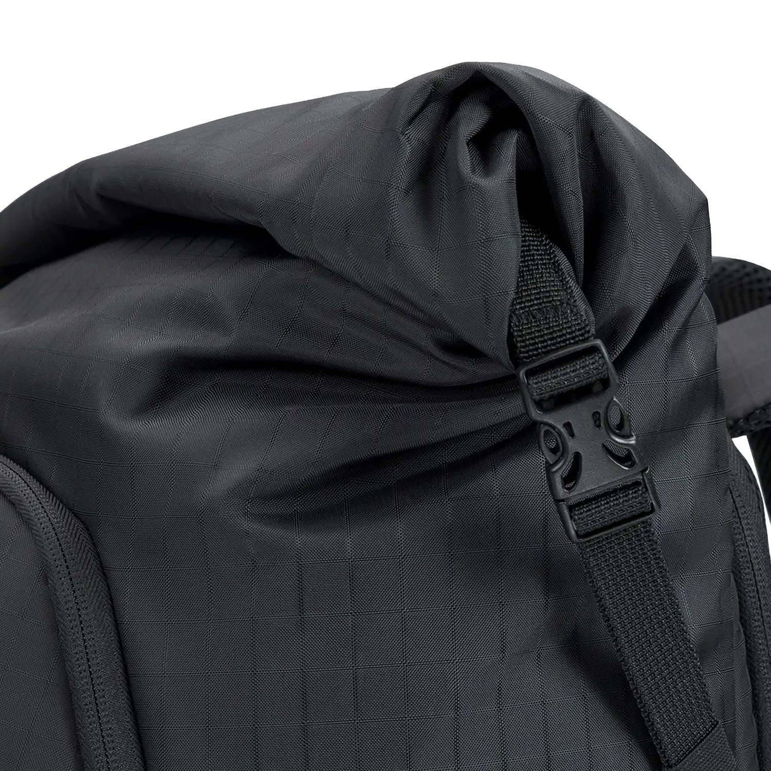 - Bolsillo principal con cremallera, doble acceso gracias a la apertura superior y frontal y bolsillo interior de malla con cierre de cremallera. El diseño enrollable con correas y hebillas ajustables ayuda a mantener las dimensiones compactas