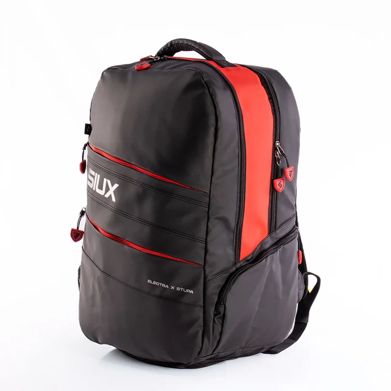 Fabricada en piel sintética de alta calidad, la mochila de pádel Siux Electra Stupa, elegida por Franco Stupaczuk, es la compañera ideal para tus partidos o tus desplazamientos diarios. Resistente y con un diseño moderno, te permite organizar a la perfección todo lo que necesitas, con compartimentos especiales para llevar hasta 2 palas sin funda y proteger tus accesorios más importantes.