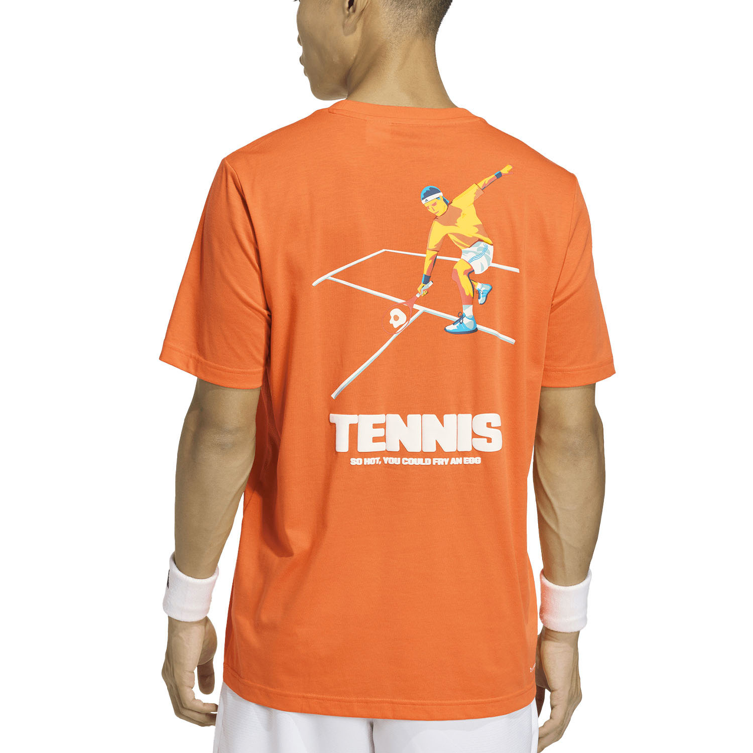 La maglietta da tennis per uomo adidas Hot Egg Graphic è il must-have versatile per eccellenza. Il jersey morbido e leggero, rifinito con tecnologia traspirante, garantisce freschezza prolungata: un capo perfetto sia per gli allenamenti intensi che per il relax quotidiano. La stampa sul retro aggiunge infine una nota simpatica e giocosa, dedicata a tutti gli amanti degli sport di racchetta.