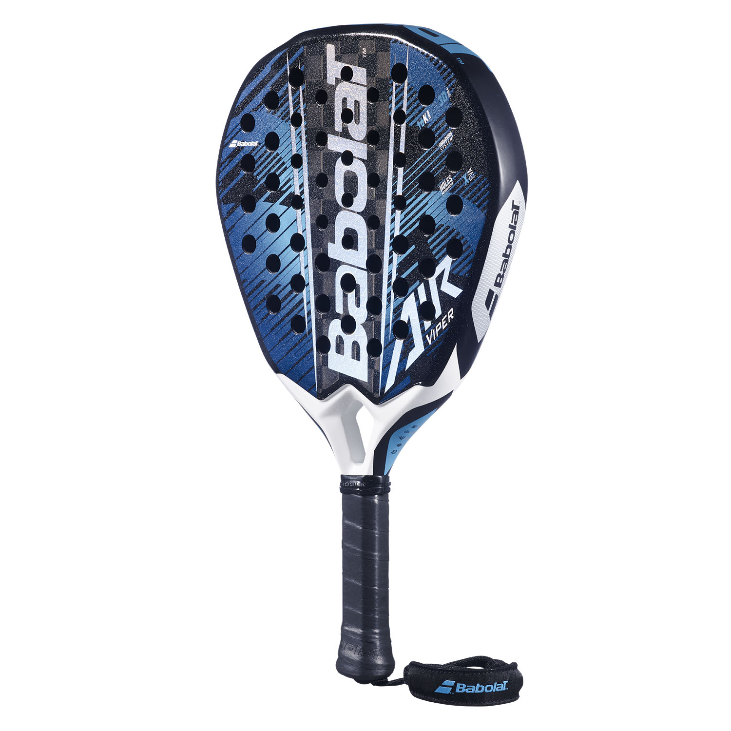 Realizzata in sinergia con SMAC, questa tecnologia permette un assorbimento ottimale delle vibrazioni, grazie a una combinazione di elastomeri, integrati alle fibre di carbonio, nel nucleo e nel manico della racchetta. - Holes Pattern System