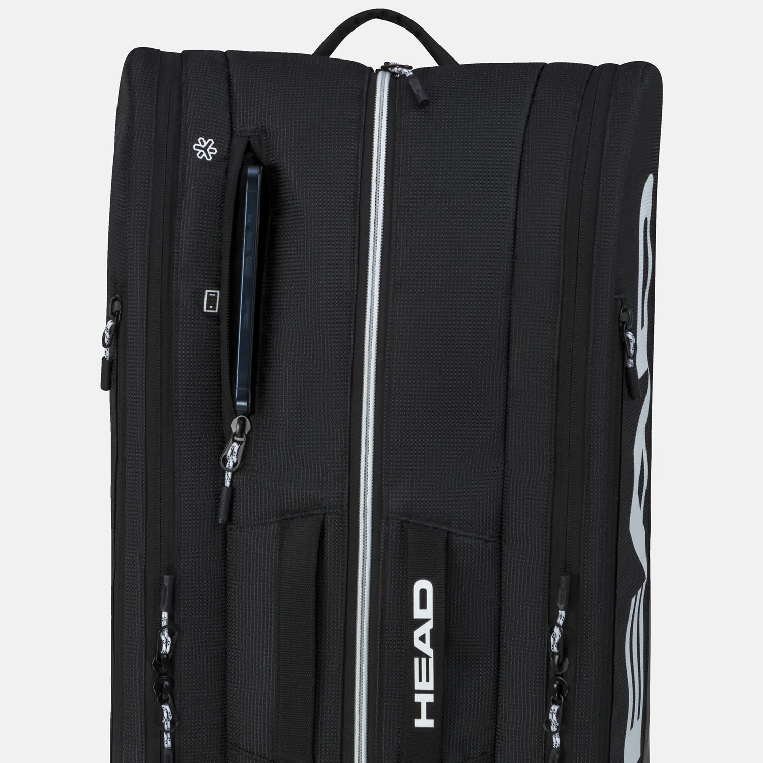 - Due scomparti centrali con zip bidirezionale, di cui uno ad isolamento termico per conservare le pale e un altro dotato di taschino interno con zip