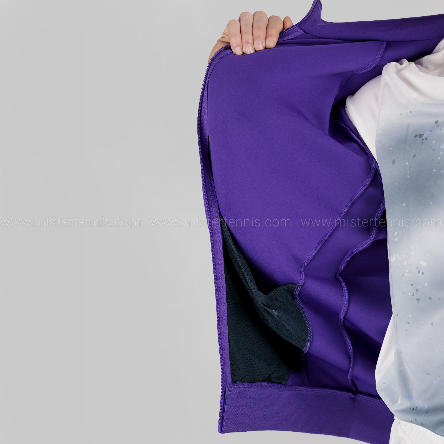 Trasferisce il sudore sulla superficie del materiale, dove evapora, donando un immediato effetto refrigerante e mantenendo la pelle asciutta anche nei match più intensi.