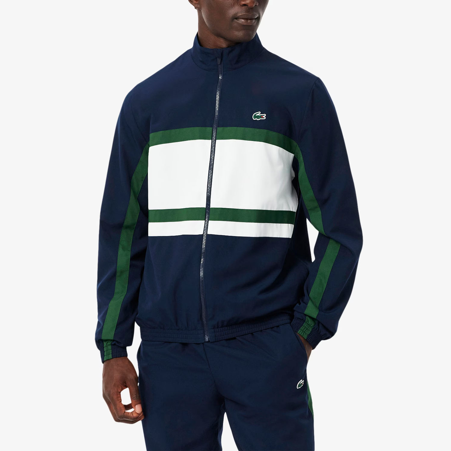 Tecnicità o stile unico? Con la tuta da tennis per uomo Lacoste Printed non dovrai scegliere. Il taffetà leggero e idrorepellente fa scivolare via l'acqua e non si stropiccia mai, così da rimanere in ordine anche dopo il set più intenso. La stampa grafica sul retro aggiunge il tocco moderno perfetto per chi, allontanandosi dal campo, non vuole rinunciare a un look impeccabile.