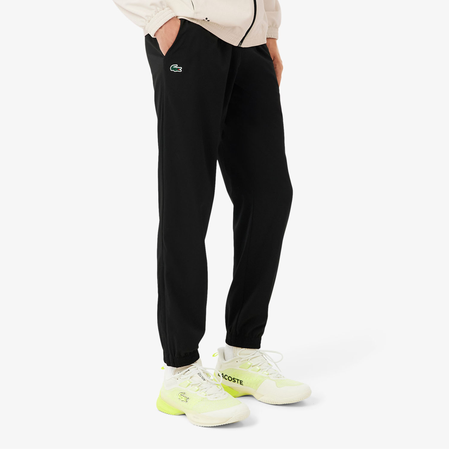 Un connubio perfetto tra stile e performance: la tuta da tennis per uomo Lacoste x Daniil Medvedev è realizzata con tessuti elastici e traspiranti, arricchita da inserti traforati al laser che migliorano la ventilazione, assicurando comfort e freschezza nei pre e post partita.