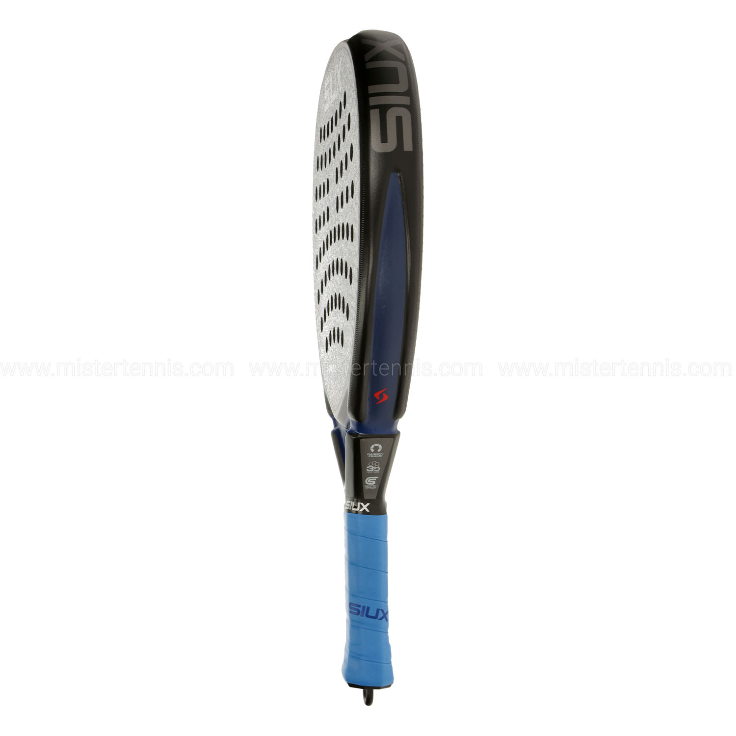 Finitura in rilievo 3D sulla superficie, applicata direttamente nello stampo della racchetta, per imprimere il massimo effetto alla palla e garantire una maggiore durata nel tempo. - Carbon Frame