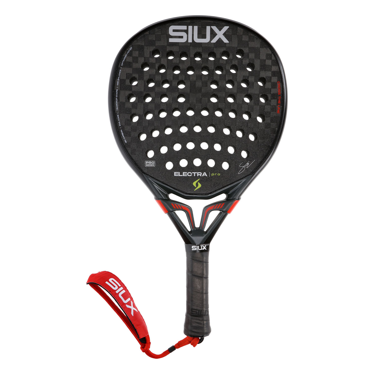 Siux Electra Pro, firmata da Franco Stupaczuk, è la pala pensata per i giocatori che cercano prestazioni di alto livello e la massima efficacia in ogni fase del gioco. Il suo design ibrido bilancia perfettamente potenza esplosiva e controllo millimetrico, offrendo la reattività necessaria per accelerare gli scambi e la precisione indispensabile per gestire i momenti più delicati del punto.