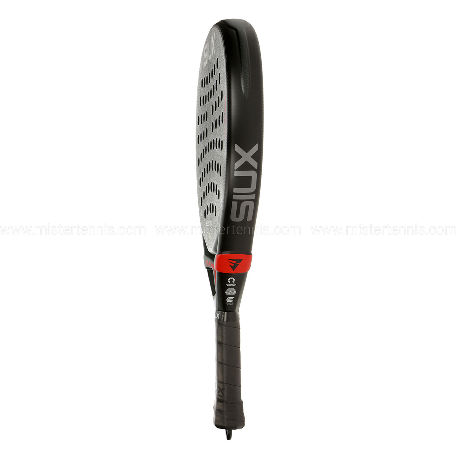 Finitura sabbiata applicata sulla superficie della racchetta per massimizzare la rugosità del piatto e potenziare sensibilmente gli effetti impressi alla palla durante ogni colpo. - Switch Strap