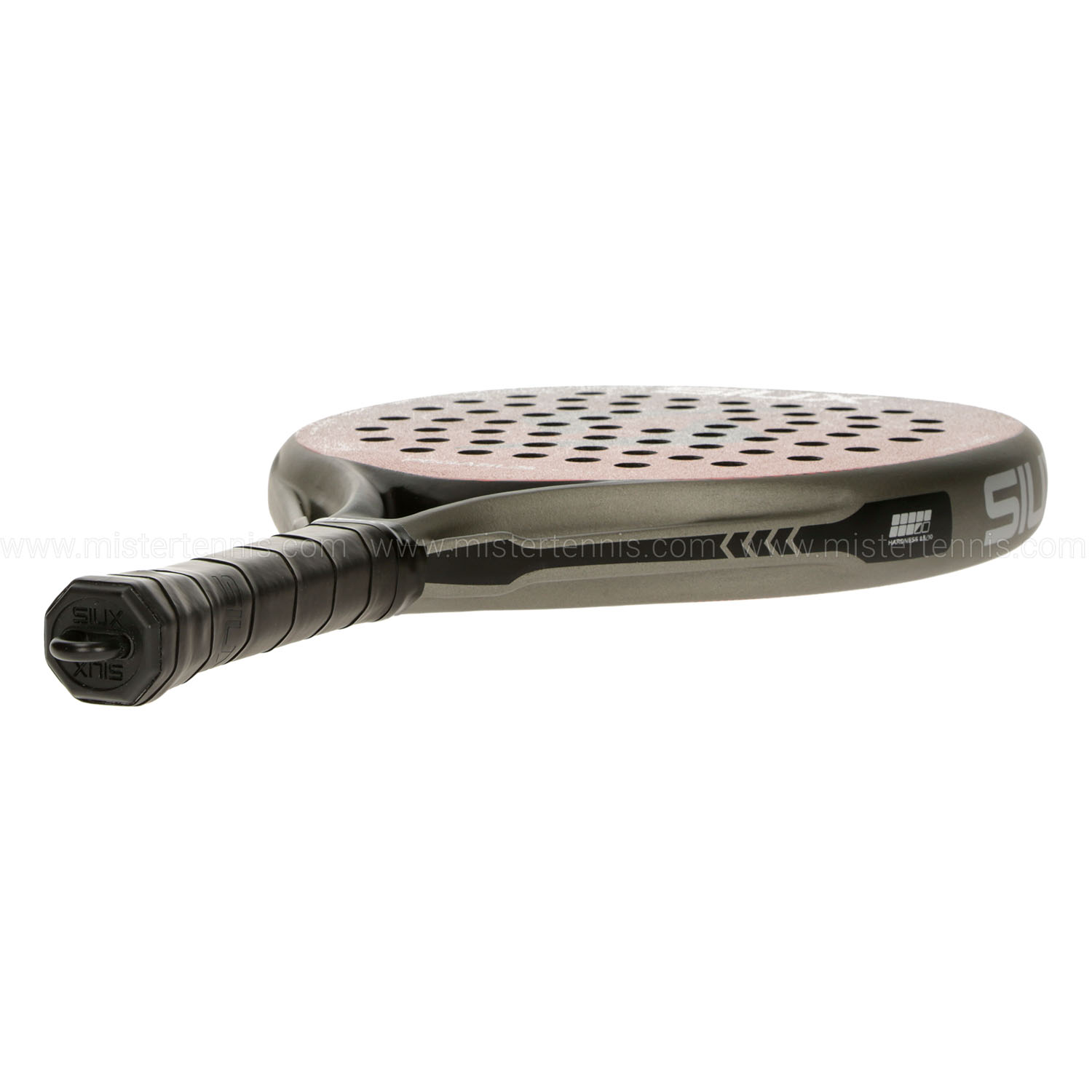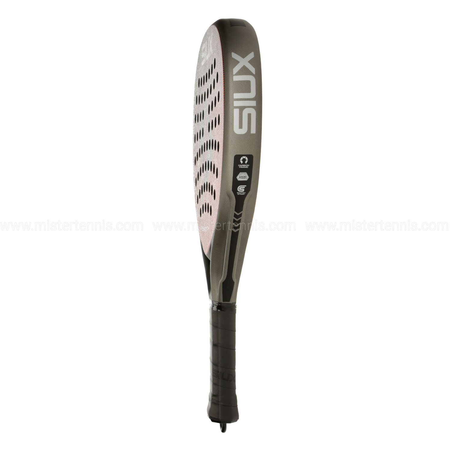 Finitura sabbiata applicata sulla superficie della racchetta per massimizzare la rugosità del piatto e potenziare sensibilmente gli effetti impressi alla palla durante ogni colpo. - Switch Strap